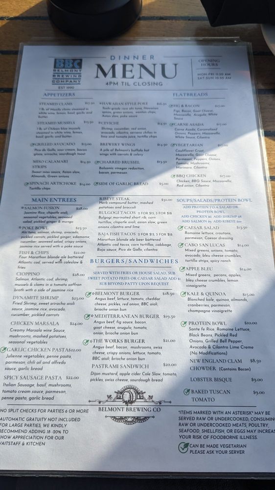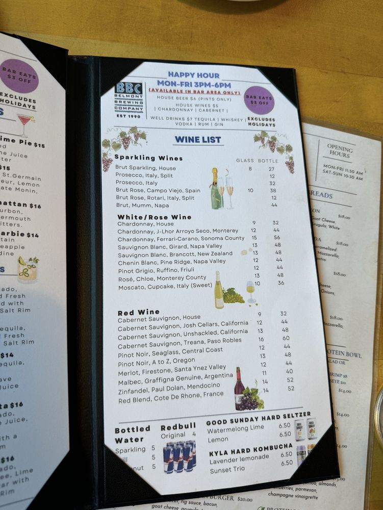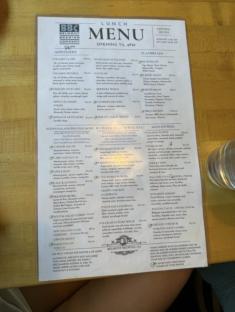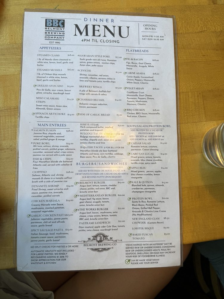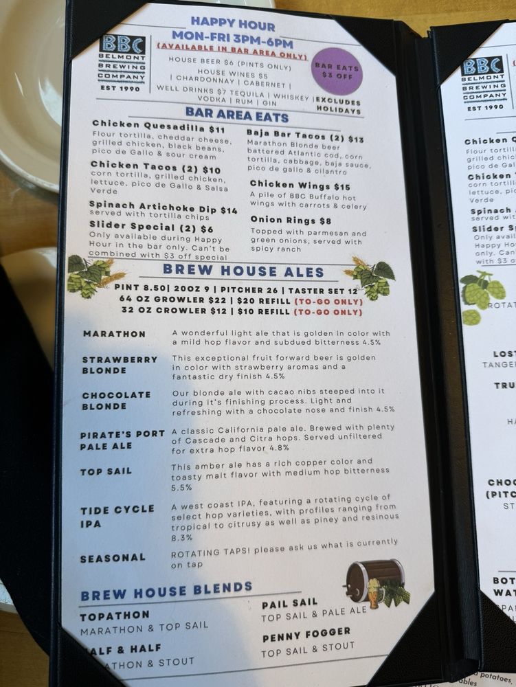 Belmont Brewing, an American restaurant located in Long Beach, CA, offers a diverse menu with vegan and vegetarian options. The restaurant is wheelchair accessible and ADA-compliant, with QR code menus available for convenience. Known for its classy yet casual atmosphere, Belmont Brewing is perfect for lunch or dinner, catering to groups and families with kid-friendly options. With waitstaff and full bar service, the restaurant also features outdoor seating and free Wi-Fi. The highlight of Belmont Brewing is its commitment to sustainability, offering plastic-free packaging and reusable tableware. The restaurant's happy hour specials on Thursday, Friday, and Sunday make it a popular choice for locals and visitors alike. Overall, Belmont Brewing provides a welcoming and inclusive dining experience with a focus on quality food and service.
